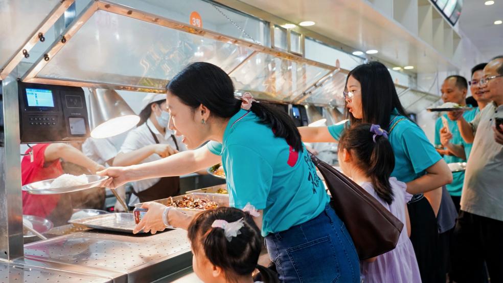 临近中午,校友们走进学校食堂。食堂里,饭菜香气扑鼻,热闹的氛围一如往昔。校友们有序排队选餐,围坐在一起,品尝着记忆中的味道,回忆着学生时代为了一顿美食而期待的心情。大家欢声笑语,在这充满烟火气的食堂里,重温旧日的美好时光。