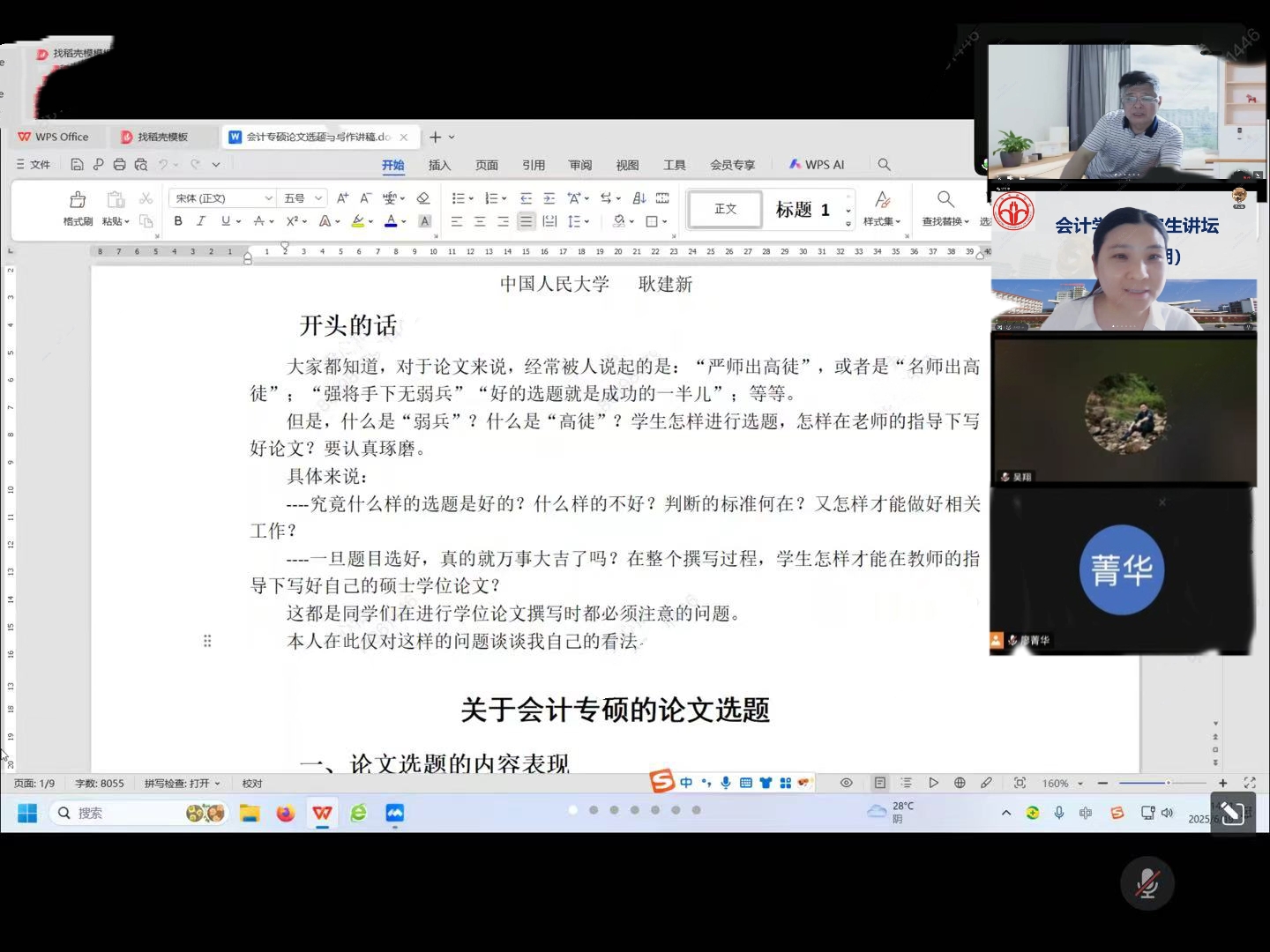 2025年6月19日,由会计学位教育中心举办的“古天乐代言太阳集团研究生讲坛(第十一期)”在腾讯会议成功举行。此次讲坛邀请中国人民大学商学院耿建新教授进行“会计专硕论文选题与写作”专题讲座。讲座由古天乐代言太阳集团舒利敏副院长主持,我院硕士生导师、广州新华学院校外合作导师及全体2024级会计硕士研究生等80多名师生参加了本次活动。