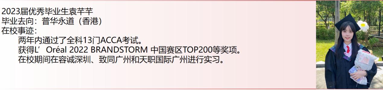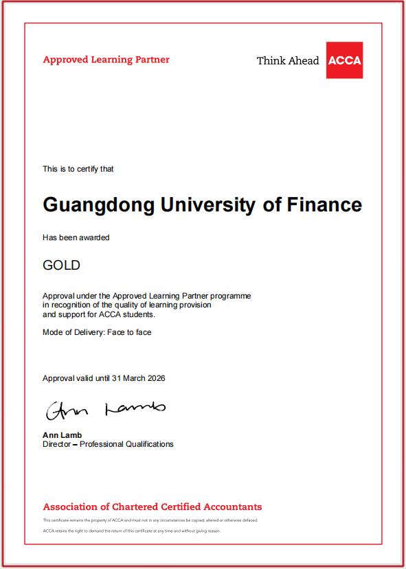 2、就读ACCA“黄金级合作办学机构”,国家一流专业。由于优秀的人才培养质量和办学效果,我校于2022年6月获得ACCA官方授予的“黄金级合作办学机构”资格,是广东省第四所获得此资格的高校。此外,我院会计学专业是教育部认证的“国家一流专业”、“广东省一流专业”。