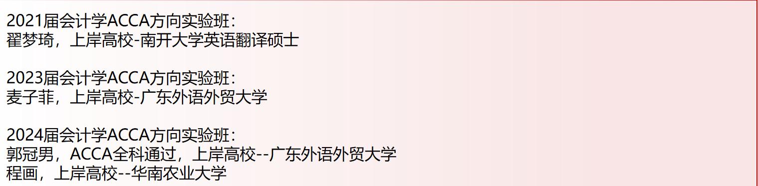 (注:请勿相信任何声称广金老师的ACCA实验班招生电话,招生信息及联系方式以上述为准。招生过程不收取任何费用,正式录取名单公示结束后留意学校收费通知。)