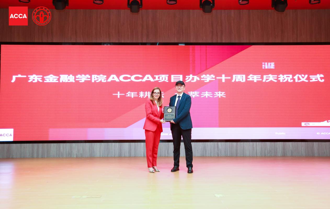 论坛现场,ACCA市场关系执行总监卢曦(Lucia Real Martin)女士特别向学院秦格院长颁授“ACCA方向班十周年纪念”奖牌,充分肯定广金十年深耕国际化财会教育的标杆贡献。学院亦正式发布与ACCA联合打造的“学员能力进阶与就业竞争力双提升”综合方案,商讨启动MPAcc与审计硕士层面ACCA课程嵌入,共同探讨“3+1”本硕连读国际化培养新模式,为粤港澳大湾区持续输送具备国际视野、战略思维与职业素养的高素质财会人才。