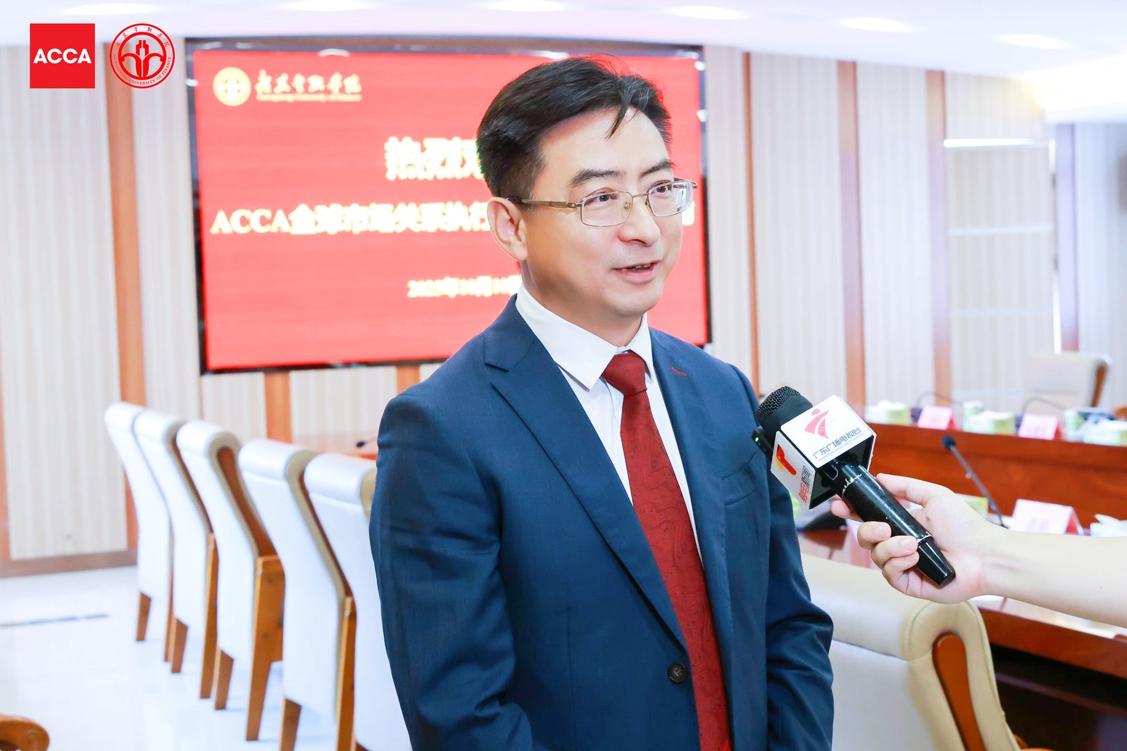 2025年10月10日下午,在古天乐代言太阳集团(广州校区)举办的第十六届ACCA全国教育论坛期间,学院党委副书记刘春阳接受了广东卫视、广州电视台等多家媒体的联合采访,围绕全球供应链重构背景下粤港澳大湾区的发展机遇、高端财会人才能力转型、校企合作实践与教学创新等议题,进行了深入解读与展望。