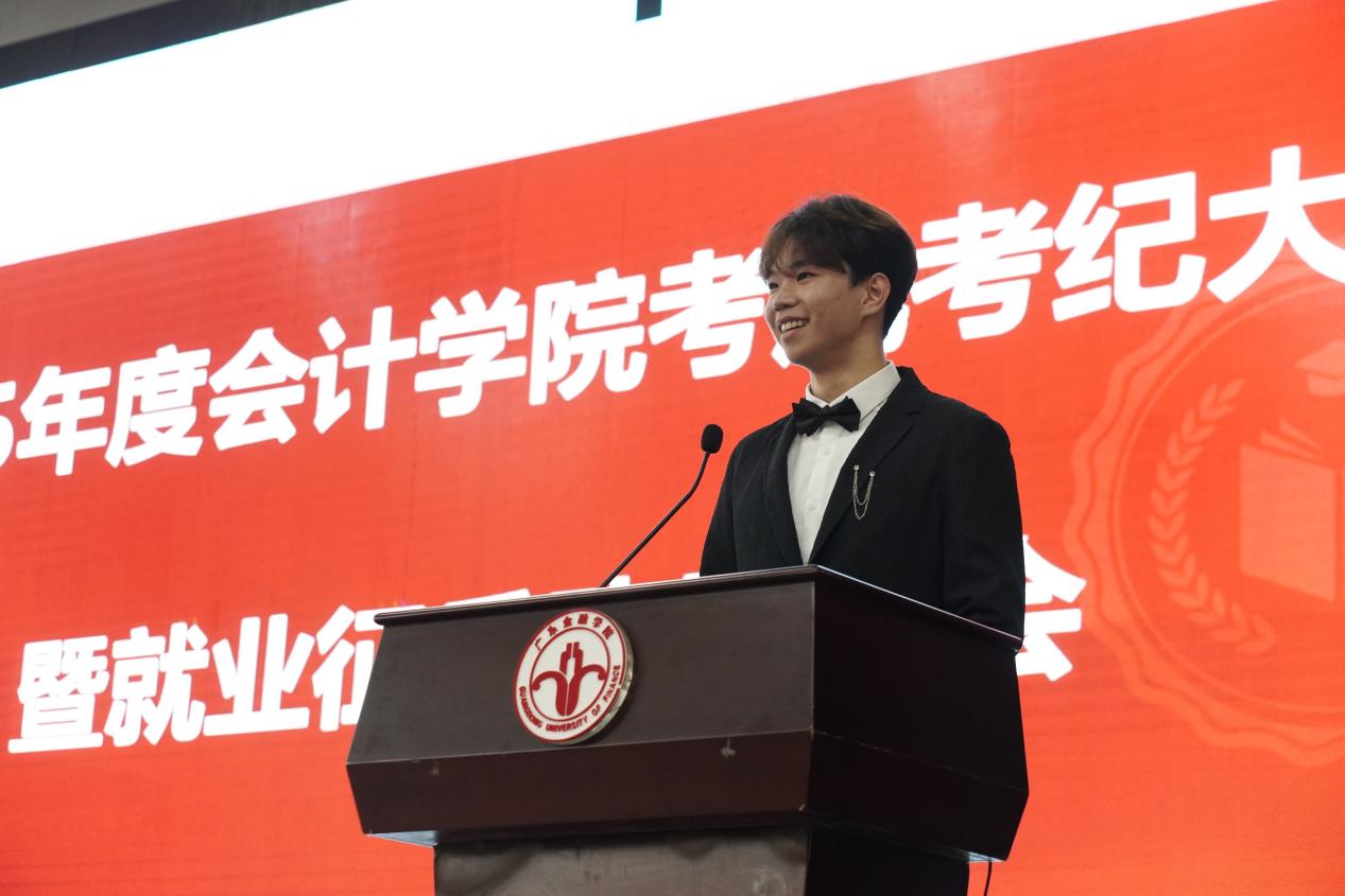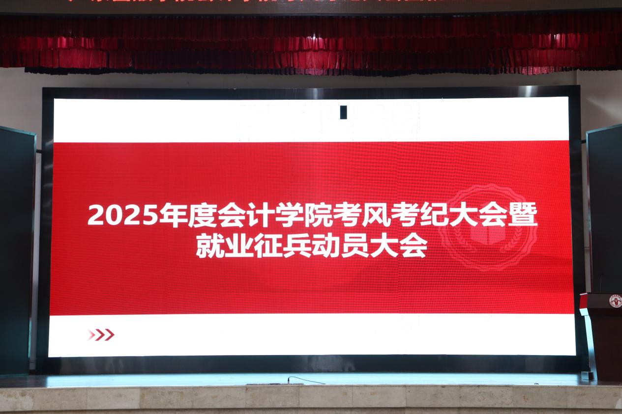 黄锡榜书记作考风考纪动员总结及2027届毕业生就业动员讲话。他指出,作风建设永远在路上,会计学子牢记“红色金融铸魂,诚信会计立身”的学院办学精神,建设优良的考风考纪,坚决杜绝各种作弊行为,用实际行动践行诚信。他在就业动员中强调,面对形势严峻的就业压力,学生要提前谋划、提前准备,完善简历中的“关键点”,积极主动就业。最后,他对同学们寄予期望,希望同学们以更饱满的热情,更坚定的信念,迎接新挑战,在追求卓越的过程中不断成长,创造更加美好的未来!