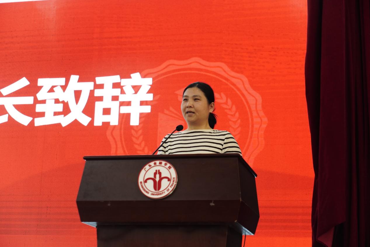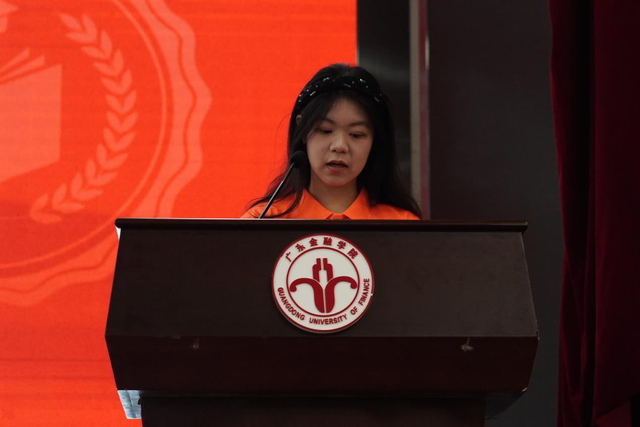 学生代表黎浩恩作诚信考试倡导。她呼吁我院学子应继续拼搏,展现新时代青年风采,在考试中恪守道德准则,做到诚信考试。
