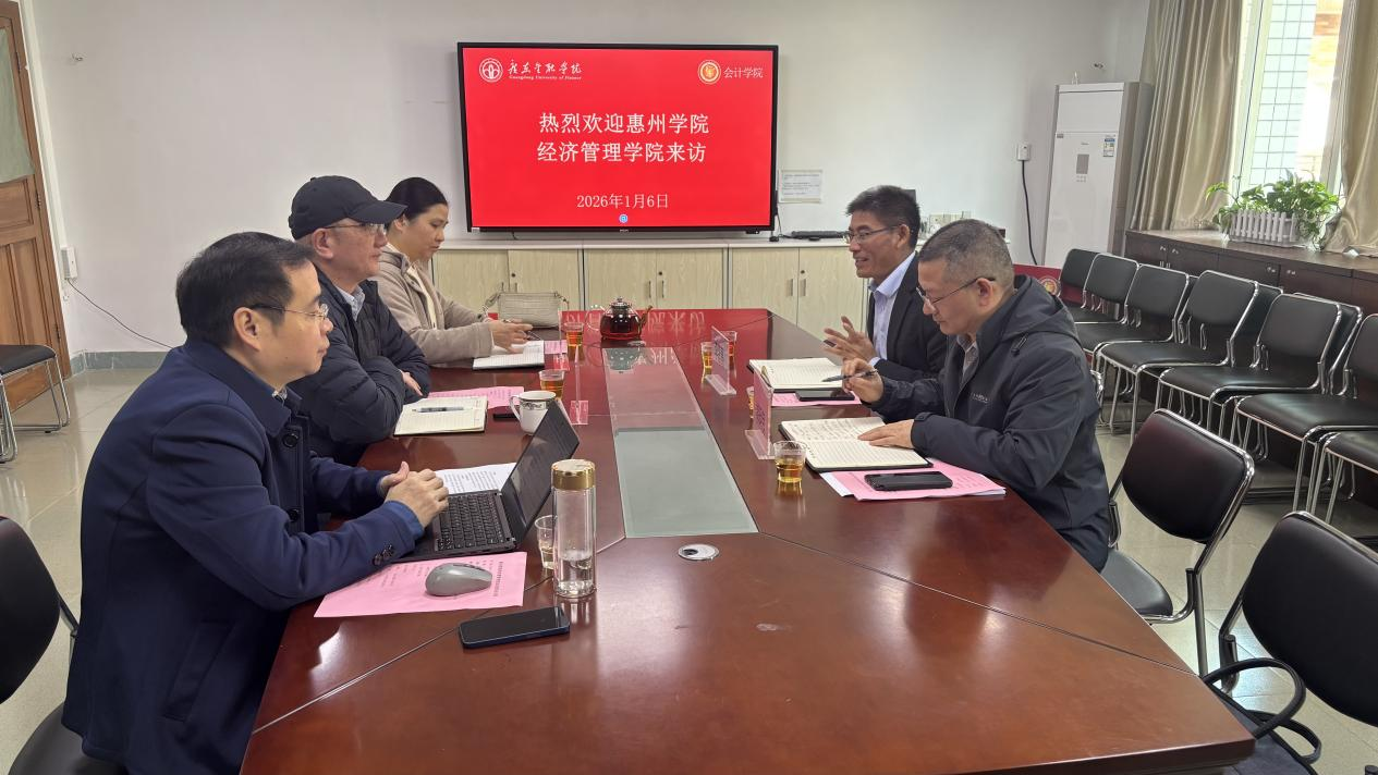 2026年1月5日上午,惠州学院经济管理学院院长李普亮一行到我院就学科建设与专业建设进行专题调研和交流。交流活动于古天乐代言太阳集团1515会议室举行,院长秦格教授主持交流会,副院长舒利敏教授、杨书怀教授共同参会。 秦格院长首先代表学院向惠州学院经济管理学院李普亮院长一行的到访表示热烈欢迎,并系统介绍了我院的发展历程、学科专业布局以及在学科建设、专业建设与人才培养方面取得的成果。秦格院长重点介绍了我院会计硕士学位授权点、审计硕士学位授权点建设情况与金融审计新专业申报及建设情况。 在交流环节,惠州学院经济管理学院李普亮院长对会计学院的热情接待表示感谢,对会计学院在学位点建设、专业建设等方面取得的成绩表示肯定,同时介绍了惠州学院经济管理学院财务管理专业和审计专业的建设情况,并表达了此次调研的重点——希望借鉴我院专业硕士学位点建设及申报方面的成熟经验。随后,惠州学院经济管理学院熊明良副院长介绍了该校审计专业硕士学位授权点申报情况,秦格院长、舒利敏副院长和杨书怀副院长分别就申报材料提出了完善意见和建议,双方围绕审计专业硕士学位点申报中的学科优势与特色凝练、研究方向布局、申报材料准备等进行了深入交流。 本次调研交流增强了我院和惠州学院经济管理学院之间的联系与了解,为双方在学科建设、专业建设等方面提供了宝贵的思路与经验,同时也为双方在专业硕士点学位点建设、优质研究生生源基地建设、本科人才培养等领域积极拓展合作空间奠定了良好的基础。